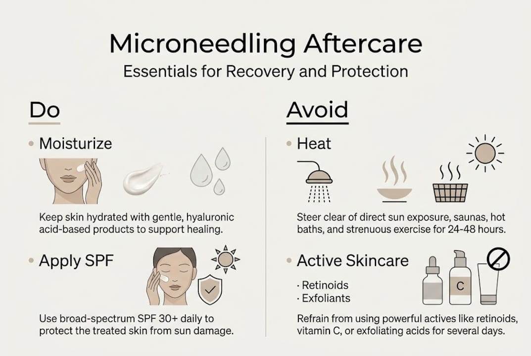 For a related perspective on post-treatment skin hydration, our Hydrafacial post-care page outlines similar recovery principles that pair well with microneedling protocols. You can also find expert aftercare tips from dermatologists who outline what to prioritize week by week.